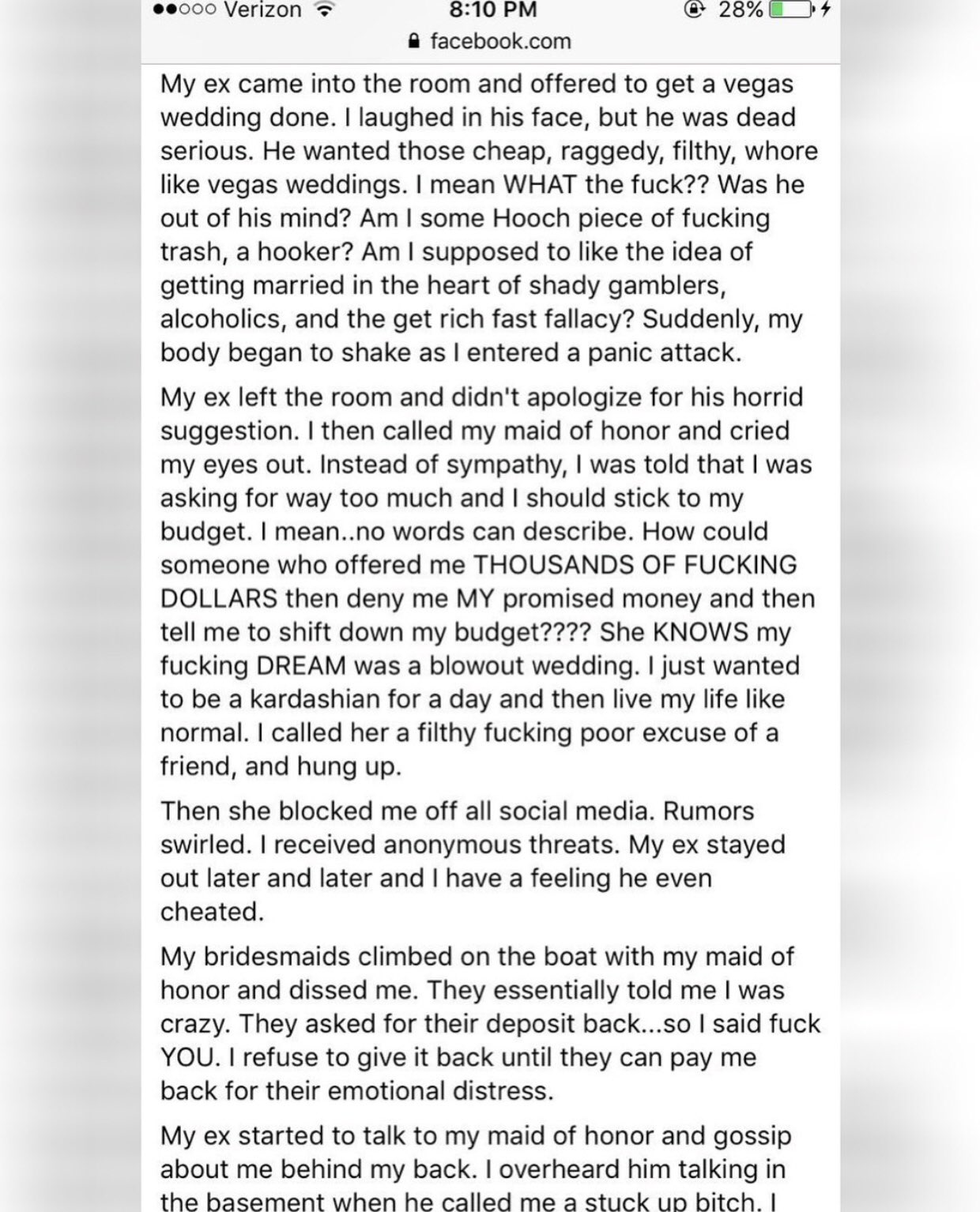 The facebook post starts with, it comes with great sadness that i am announcing the cancellation of the censored wedding. A bride has gone viral after canceling her wedding because friends and family refused to pay for it. Chat about bride cancels wedding after guests refused to pay $1,500 attendance fee. Best man ruins wedding by stealing the spotlight! An anonymous bride who was initially identified as canadian susan didn't follow this sage advice, and called off her wedding after her guests refused the bizarre and unreasonable. Waiting the bride and groom to appear. But one bride could not bear the thought of not having her fairy tale wedding and decided to seek help from her guests. Susan canceled her wedding when guests refused to pay $1,500 to attend. A furious bride has gone on a lengthy reddit rant after her guests refused to fork over $1500 to attend the ceremony. If you couldn't contribute, you couldn't make it to our. The bizarre story has received a massive response after being shared on facebook and reddit by a woman identified as the bride's cousin. A canadian woman known only as canadian susan recently got her five minutes of online fame after revealing that she had to cancel her dream wedding just 4 days before it was scheduled to take place, because guests refused to pay a $cad 1,500 cash gift required to attend. The facebook post starts with, it comes with great sadness that i am announcing the cancellation of the censored wedding.